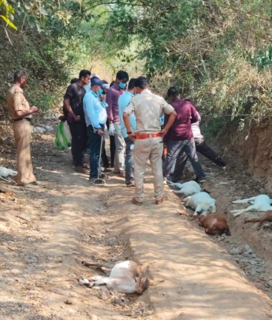 नाल्याकाठावरील शेतातील पाणी पिल्यानंतर बकऱ्या मृत; अंदाजे ५ लाखांचे नुकसान – पोलिस व पशुवैद्यकीय पथक घटनास्थळी
