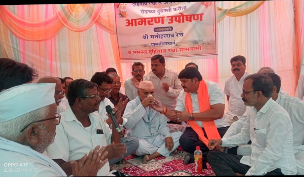 दहीगाव रेचा येथे रस्त्या करीता गेल्या तिन दिवसांपासून ग्रामगीताचार्य मनोहर रेचे आमरण उपोषणाला बसले असता त्यांच्या या आंदोलनाला यश आले असून आमदार गजानन लवटे यांचा वचननामा तर आमदार ज.मो.अभ्यंकर यांची सभागृहात लक्षवेधी भूमिकेमुळे तर जिल्हा परिषद बांधकाम प्रशासनाच्या लेखी पत्रा नुसार उपोषण कर्ते रेचे गुरुजी यांना ज्यूस पाजून आमरण उपोषणाची सांगता करण्यात आली आहे.