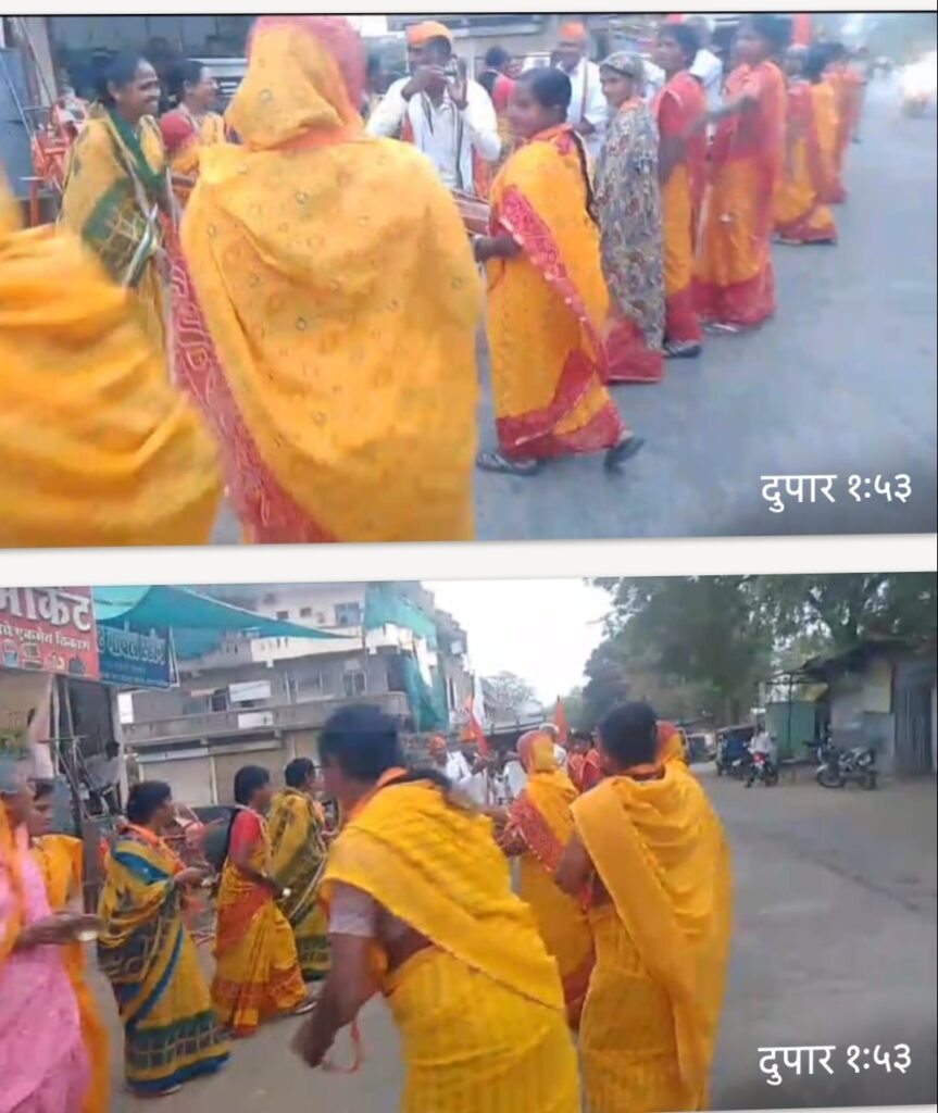 शहरातील प्रमुख मार्गावरून निघालेल्या या मिरवणुकीत अबालवृद्ध आणि महिला भाविक मोठ्या संख्येने सहभागी झाले होते.