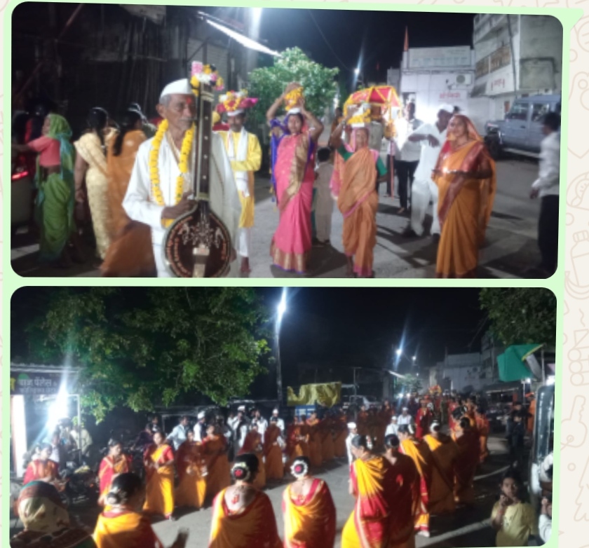 गावातील शेकडो महिला आणि पुरुषांनी टाळ-मृदंगाच्या गजरात मिरवणुकीची शोभा वाढवली.