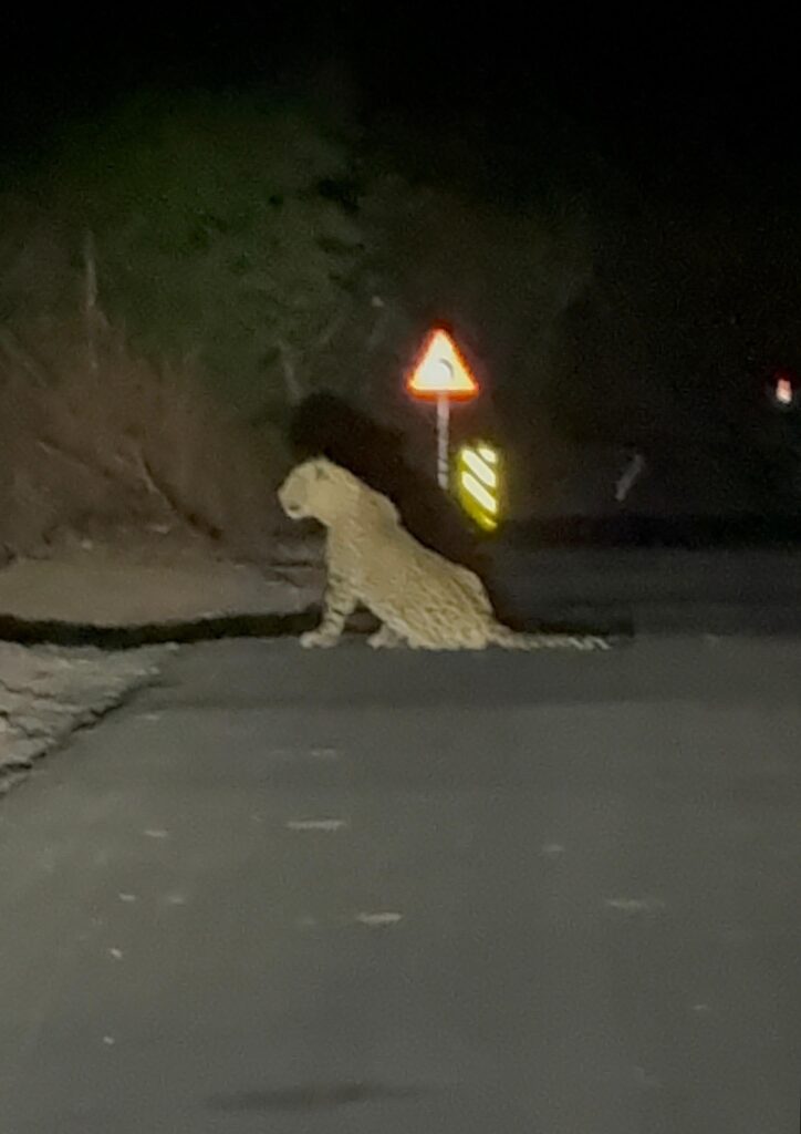3 एप्रिल रोजी रात्री आठ ते साडेआठ दरम्यान धोंडाआगर येथील माजी सरपंच दिनेश मावसे हे आपले शेतात जात पिकांना पाणी देण्यासाठी असताना घरा पासून थोड्याच अंतरावर धोंडाआखर चीपी दरम्यान असलेल्या डांबर रोडवर बिबट्या ठाण मांडून बसलेला दिसताच त्यांची तारांबळ उडाली त्यांचे सोबत असलेल्या सहकार्याला सावध करुन बिबट्या फोटो मोठ्या हिमतीने काढला असता त्याला चाहूल लागताच त्याने उठून चालत असतानाचा व्हिडिओ सुध्दा शुट करण्याची हिम्मत केली