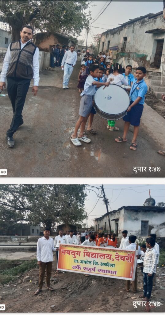 नवयुग विद्यालय च्या विद्यार्थ्यांनी व जिल्हा परिषद शाळा व अंगणवाडी च्या विद्यार्थ्यांनी गावातून बँड बाजा सहवाजत गाजत अमर हुतात्मे.वीरांच्या नावांच्या जयघोष करत ज्यांनी आपल्या प्राणाची आहुती देशाच्या संरक्षणाकरता आपले बलिदान दिले. अशा भारतमातेच्या महान सुपुत्रांना अभिवादन पर जयघोष करत गावातून शिस्तबद्धजबरदस्त प्रभात फेरी काढली डॉ. बाबासाहेब आंबेडकरांनी भारत देशातील प्रत्येक नागरिकाला समानतेचा अधिकार लागू करून संवैधानिक अधिकार प्रदान करून देणाऱ्यामहामानव व.वीर जवानांना अभिवादन करण्यात आले. प्रथम झेंडावंदन नवयुग विद्यालयाचे आजीवन सदस्य महादेवराव अनंतराव नेरकर यांच्या हस्ते करण्यात आले. जि प शाळा चे ध्वजारोहण श्री इंगळे सर यांनी पार पाडले. झेंडावंदन झाल्यानंतर जि प शाळे च्या विद्यार्थ्यांनी कवायती साजऱ्या केल्या गावातीलप्रथम नागरिक सरपंच सौ वर्षाताई गायकवाड यांनी ग्रामपंचायत देवरी येथील ध्वजारोहण केले. जि प शाळा नवयुगविद्यालय विद्यार्थी विद्यार्थिनीव अंगणवाडी क्र. एक दोन च्या चिमुकल्यांनी ग्रामपंचायतीच्या ध्वजारोहणाला मानवंदना दिली. तेव्हा नवयुग विद्यालयाच्या विद्यार्थिनींनी वीर पुरुषांच्या स्मृतिनिमित्त नृत्य सादर केले.या कार्यक्रमाला मुख्याध्यापक श्री सोनवणे जीप मुख्याध्यापक श्री इंगळे . पटवारी केळकर साहेब पशुसंवर्धन विभाग