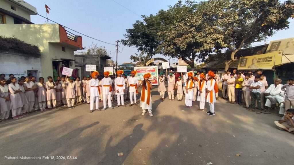 आज दिनांक 18 फेब्रुवारी 2026 रोजी पाथर्डी येथील निळकंठ सपकाळ विद्यालयाच्या विद्यार्थ्यांनी राष्ट्रीय हरित सेने अंतर्गत वृक्षतोड थांबवा, पर्यावरण वाचवा या विषयावर पथनाट्याचे पाथर्डी येथील चौका चौकात सादरीकरण केले. विद्यालयातील सर्व विद्यार्थ्यांची सर्वप्रथम गावातून पर्यावरण जागृतीसाठी प्रभात फेरी काढण्यात आली. या प्रभात फेरीदरम्यान इयत्ता ९ वीच्या विद्यार्थ्यांनी झाडे लावा,झाडे जगवा. करशील वृक्षावर माया, तर मिळेल थंडगार छाया. यासारख्या घोषणा देऊन विद्यार्थ्यांनी सर्व गावातील लोकांमध्ये पर्यावरण जागृती निर्माण केली. तसेच वृक्षांचे महत्व समजावून सांगताना पथनाट्याचे सादरीकरण करण्यात आले. वृक्षांचे फायदे आणि वृक्षतोडीचे दुष्परिणाम विद्यार्थ्यांनी आपल्या अभिनयातून गावातील लोकांसमोर मांडले. राष्ट्रीय हरित सेने अंतर्गत निळकंठ सपकाळ विद्यालयाचे विद्यार्थी विविध उपक्रम राबवत असून यामध्ये विविध प्रकारच्या वृक्षांच्या बियांचे संकलन करणे, महाशिवरात्रि पर्वावर बेलाचे महत्व, होळी सणानिमित्त लाकूड तोडण्याऐवजी गोवऱ्यांचा वापर करणे मकर संक्रांतीला नायलॉन मांजाचा वापर न करण्याची शपथ घेणे असे उपक्रम विद्यालयामार्फत राबविले जात आहेत. या उपक्रमासाठी वनविभागाचे गिरनार साहेब तसेच विद्यालयाचे मुख्याध्यापक श्री एन.पी.मेतकर सर, प्रभारी शिक्षक श्री भिकासिंग घोती सर, कु. भटकर मॅडम, श्री दबडघाव सर, श्री राठोड सर,श्री डोंगरे सर, श्री मानकर सर व श्री कुकडे सर यांनी मार्गदर्शन केले.